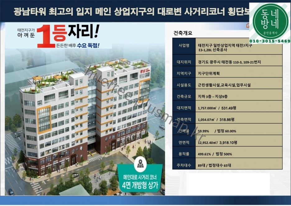 경기 광주 태전동 광남타워 상가 매매·임대, 항아리상권, 사거리코너, 상세문의